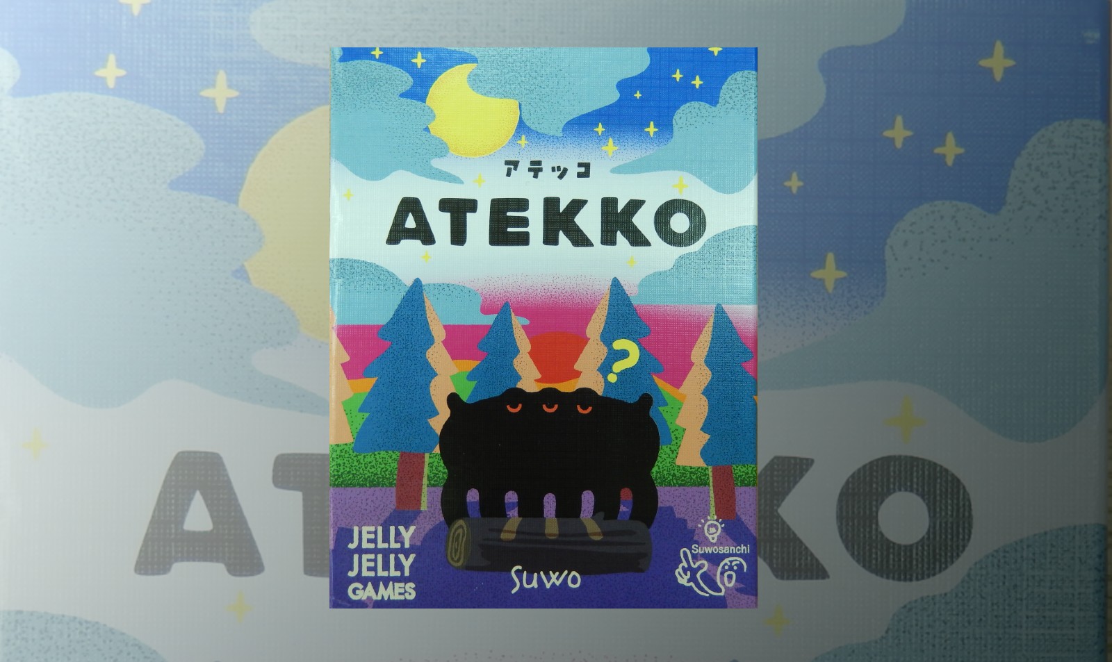 手のひらサイズの箱にデザインされた夜の森と謎のシルエット。