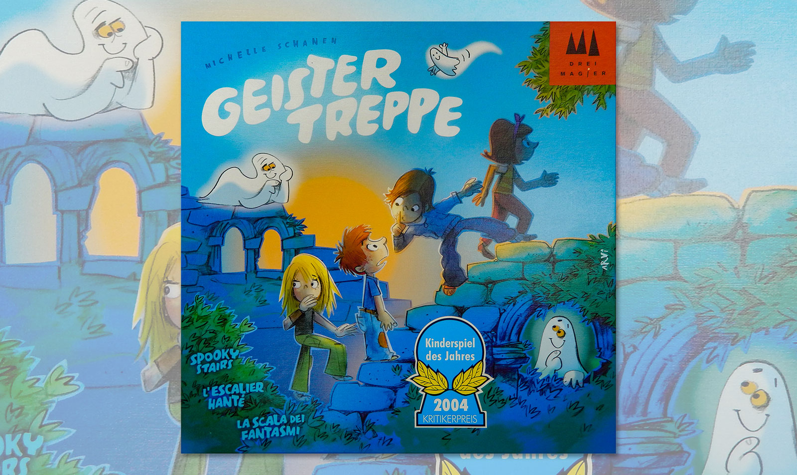 ボードイラストも夜の階段とオバケ達が描かれた絵本に出てきそうなタッチとなっています。