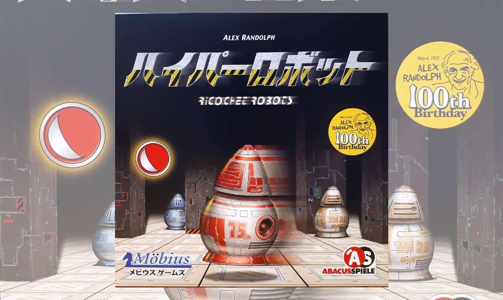 ロボット(赤、緑、青、黄)4個、目標タイル16枚、渦巻目標チップ1枚
